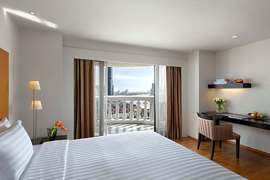 This spacious suite has beautiful views of Chao Phraya river from its private balcony. It includes a separate living area with DVD player. An private bathroom has a separate bathtub and a shower cubicle.