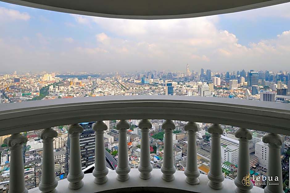 Lebua Premium Suite City View is 710 square feet and includes a king-size bed 150-183 width plus living room, balcony, desk, satellite tv , hairdryer, tea and coffee making facilities , safe, bathrobes, and slippers.